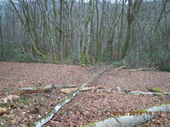 samedi 13 décembre 2014,cet après midi je vais au bois en vélo.Il fait doux,environ 8°C,le ciel est gris et il n'y a pas de vent.Voici les chataigniers que j'ai prévu de faire tomber,ils font environ 25cm de diamètre.