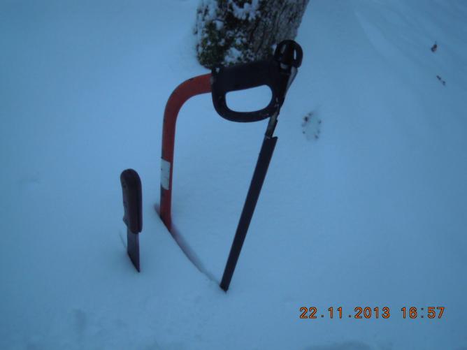 Je commence par dégager une branche de chêne qui a été cassée par le poid de la neige.